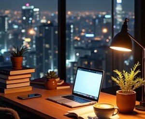 Working from home late-night! (Get your Free copy of “Universal Success Principles” HERE!)