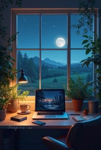 Bright moon over-looking my workspace. If you want it, don’t be afraid to dream big! (Download “Success Principles” Now!)